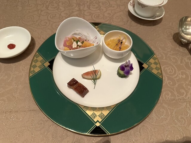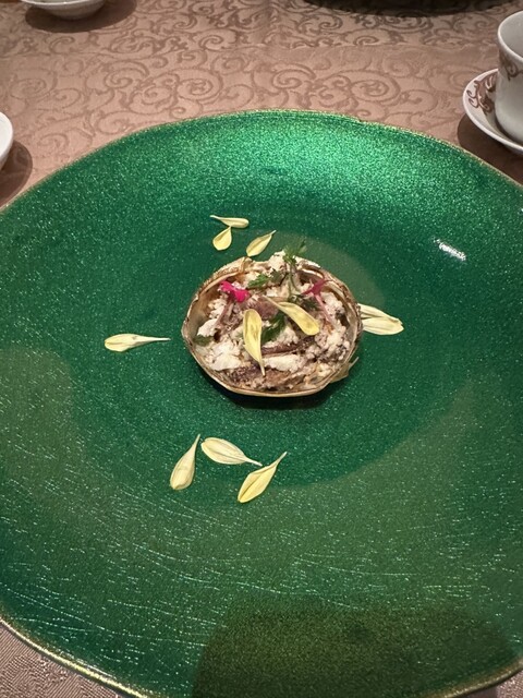 全7種類のお料理に追加で北京ダックと上海蟹(一杯)4500円をいただきました。