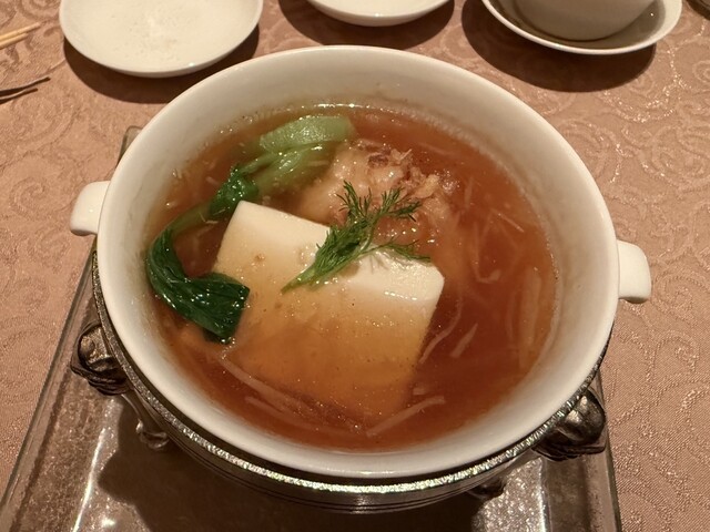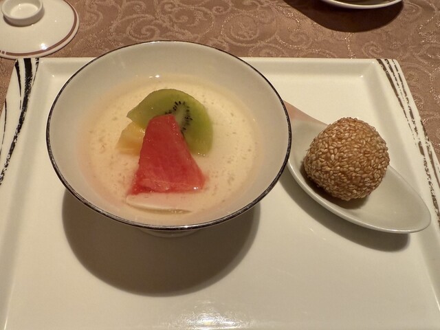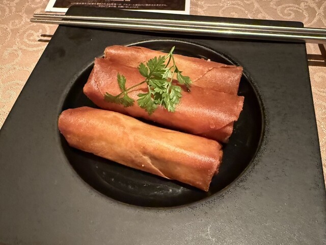 松茸と春巻きと杏仁豆腐は文句なしに美味しく、特に杏仁豆腐は今まで食べた中でも上位に入る美味しさです。春巻きは皮がパリッと香ばしくて中の旨みがしっかり詰まっていました。松茸も香り高く、贅沢な味わい。