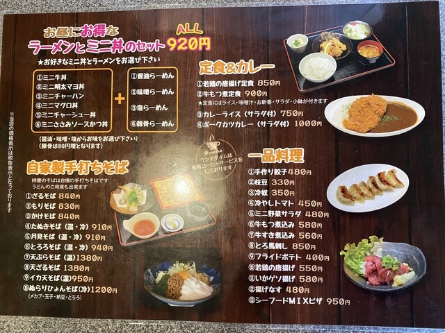 メニューも豊富でラーメンから一品料理、揚げ物、刺身、ピザまで網羅していて1回来ただけでは食べきることができません。