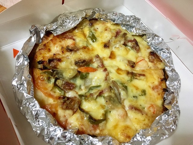 テイクアウトのピザがきたのがビーフシチューが登場してから30分後。