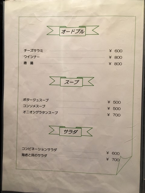 ピーマンとセロリの輪切りが浮いたコンソメスープで、濃さがちょうどよく美味しいです。