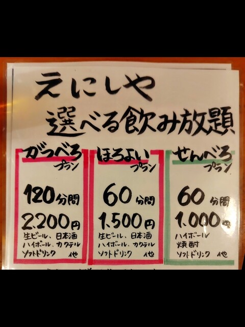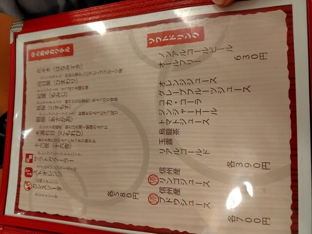 | ドリンク | 日本酒あり、焼酎あり、ワインあり、カクテルあり、日本酒にこだわる、焼酎にこだわる、ワインにこだわる、カクテルにこだわる |