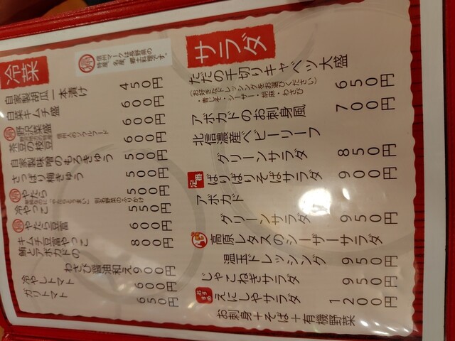 ビールを飲みながら「えにしやサラダ」@1200と、お店一推しの「鶏山賊焼(そば粉)」@1200を注文しました。