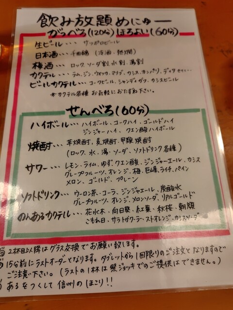 大瓶ビールは直ぐに飲み干したので、飲み放題の「せんべろプラン」を注文。せんべろプランはビールが無く60分の飲み放題です。