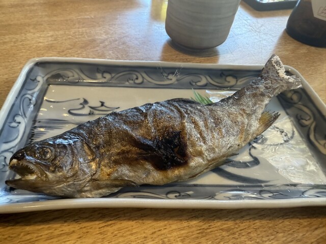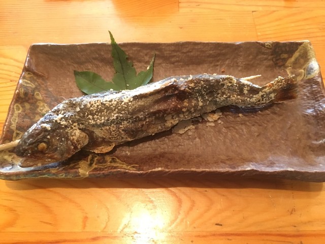 「岩魚の塩焼き」を食べたかったのですが、生憎入荷なしでしたので、やむなく「山女塩焼き」にしました。