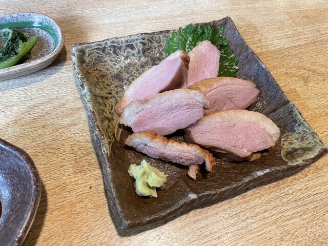 他に「湯葉刺し」「合鴨スモーク」「もり蕎麦2枚」を注文しました。合計4,100円です。