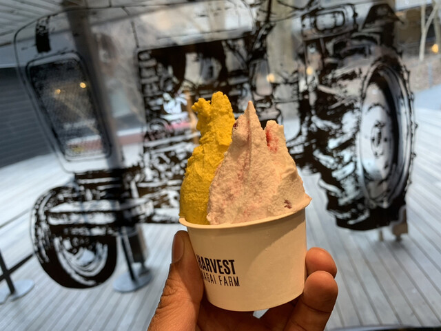 中から木いちごミルクとかぼちゃのダブルをお願いしました。