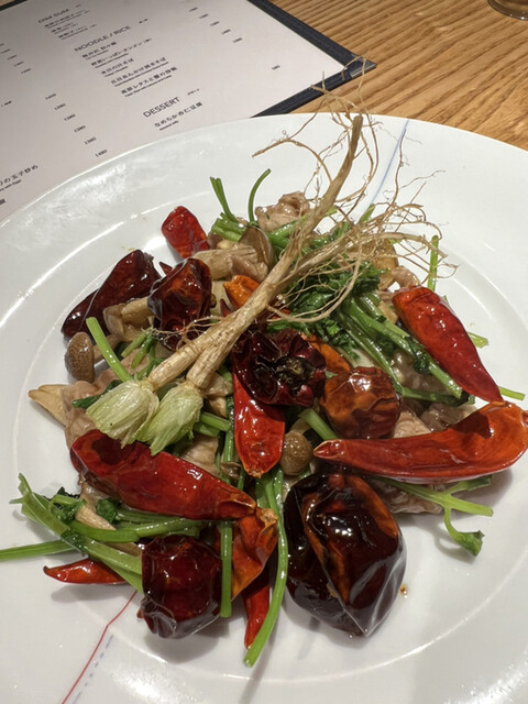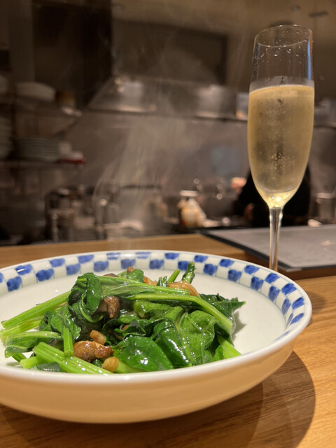 一見シンプルな青菜炒めにもコクのある味付けが際立つ。