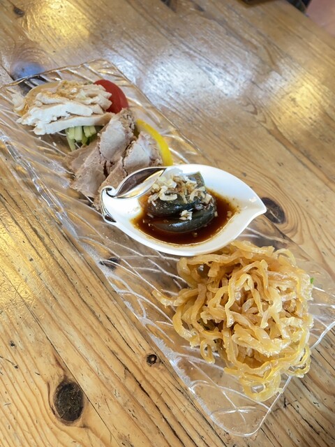 72西コースを楽しみ、お昼に「中華クラゲの冷菜」をアテにビールでランチを待ちます。