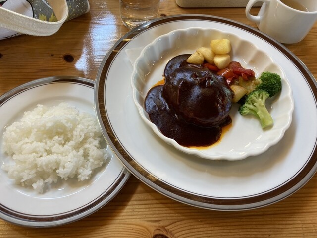 食事なしのプレーだったので西コースのレストランでハンバーグランチ(1480円)いただきました。