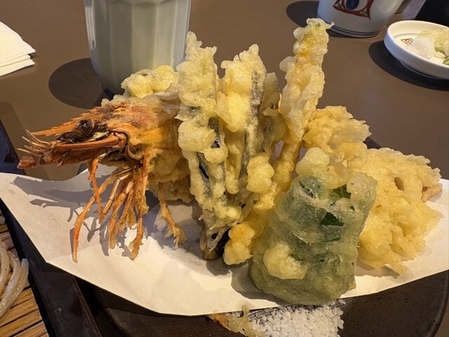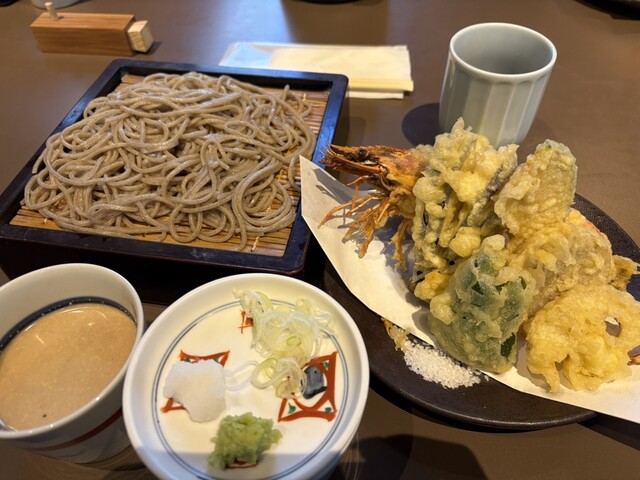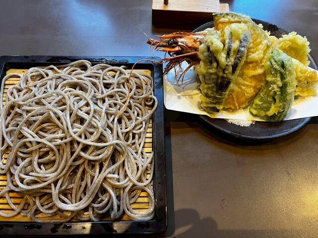 天せいろ上を注文。大きなエビが2匹ついていて見た目...