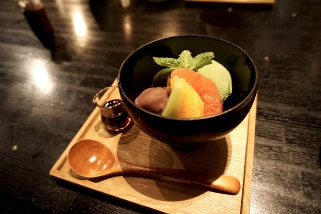 抹茶を選びましたが濃厚でとろける抹茶アイスでした。フルーツもフレッシュ。言うことなしです。