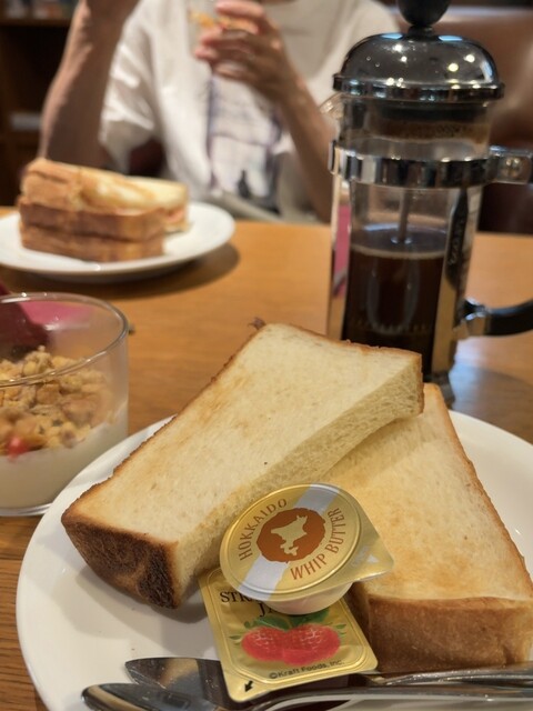ハルニレテラスを含め、とにかく 雰囲気が最高。何回か来ているけれど、店内のソファー席がお気に入り。モーニングは、小生がトースト、奥さんがベーコンチーズサンドを食べたけれど、同じ値段ならば、トースト以外...