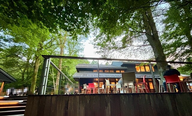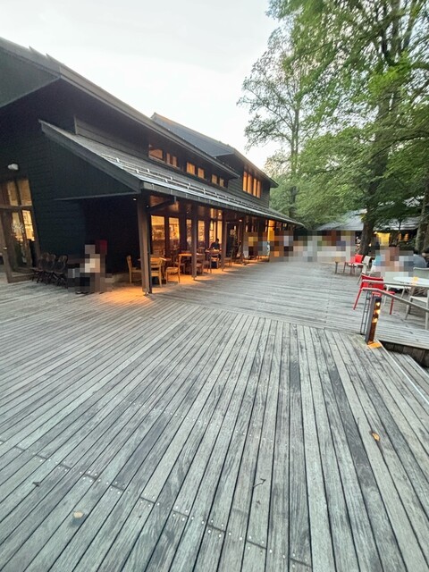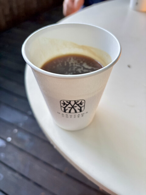 この日の夕刻6時半の下界(群馬県)は真夏の30℃、ハルニレテラスの川沿いのオープンテラスは24℃。ラストオーダーの18:30ギリの訪問でした。店内での飲食は不可だったので川沿いのオープンテラスでまったりとディナー後の珈琲をいただきました。お店は丸山珈琲のハルニレテラス店さんです。川沿いということもあり、少し涼し過ぎるくらいの気温でした。まさに避暑地と言う言葉がピッタリの場所です。丸山珈琲さんは軽井沢に何店舗もあるようですか、皆さんここのお店が雰囲気とあいまって一番良いと評判ですね。私はにんにく系の料理の夕食後で少し肌寒かったのでアメリカーノ(ホット)のMサイズ(650円)を注文しました。個人的には普通のアメリカーノより少し濃いかなぁと思いましたが苦みもほぼ無くて酸味を少し感じながら珈琲の香りが鼻に抜けていく感覚を感じながらまったりとそして川の流れる音と共に美味しく頂きました。付近には老夫婦と思われるお二人が川の流れを見ながら何かを語り合う姿がとても素敵に見えました。また若いヨーロッパ系外国人の親子(よちよち歩きのお子様連れ)もいたりしてなんだかとても心和む空間でした。ハルニレテラスはそんなに広くないスポットエリアですが、地球の歩き方(信州版)にも出てる来る場所でもあり、また是非立ち寄りたい場所です。自分用にカフェインレスドリップ珈琲のお土産(@185円/袋)も数個購入しました。これがまた美味しいこと(水は安曇野のミネラルウォーターを使用)。書いてある通り「やさしい深煎り」で甘さの味の後から優しいほろ苦さを感じます。カップルや女性同士の旅の方、階段の箇所もありますが、ベビーカーの方もいらっしゃいました。とにかく夕方は雰囲気が最高です。モーニングの方はもちろん朝早く行けば人も少なくて良いでしょう。ハルニレテラス横の駐車場は最初の30分が無料。それ以降1時間おきに600円必要ですが、ハルニレテラスやトンボ温泉他付近の施設の利用で2000円以上買い物すれば2時間無料となります。10,000円以上なら3時間無料。各店舗合算していただけます。離れた場所には無料の駐車場もあります。詳しくはホームページの駐車場より確認してください。ごちそうさまでした。