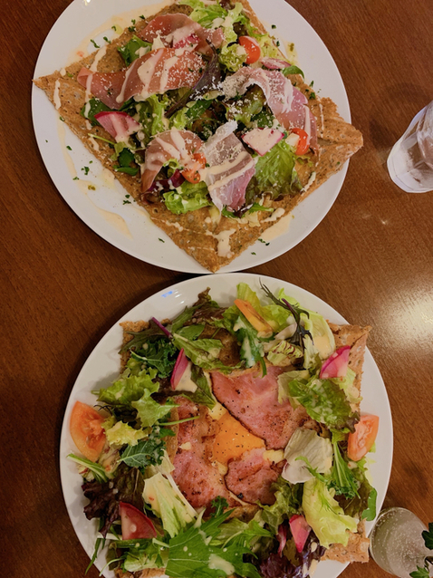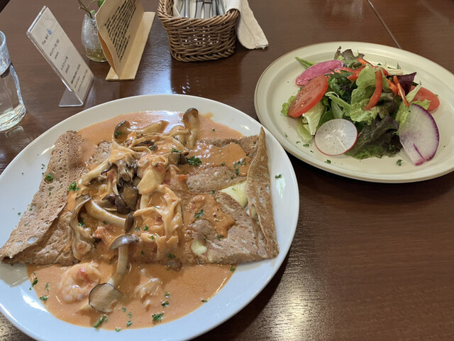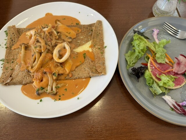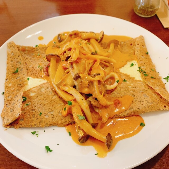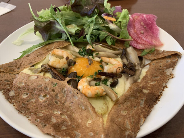 ガレットを食べるならここで決まり。キノコソースのサラダ付きガレットもデザートのエシレバターとハチミツのガレットも美味かった〜。