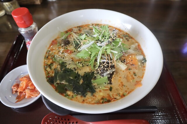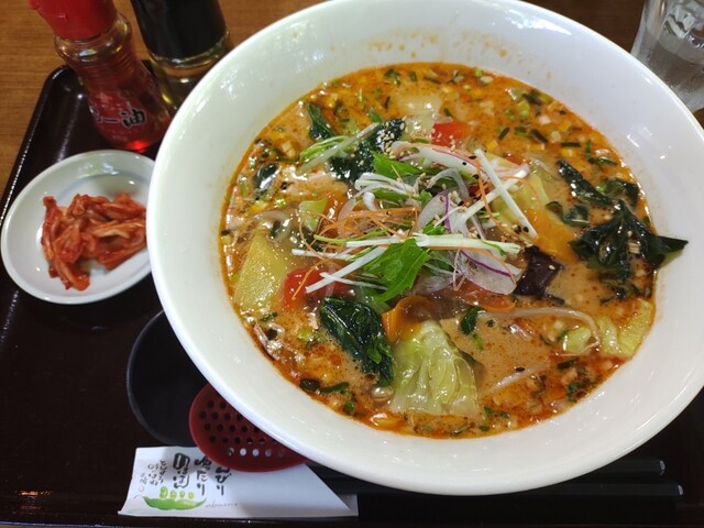 坦々クッパは、パプリカやしいたけ、銀杏、リンゴのようなシャキシャキフルーティーなものなど、様々な食材が...