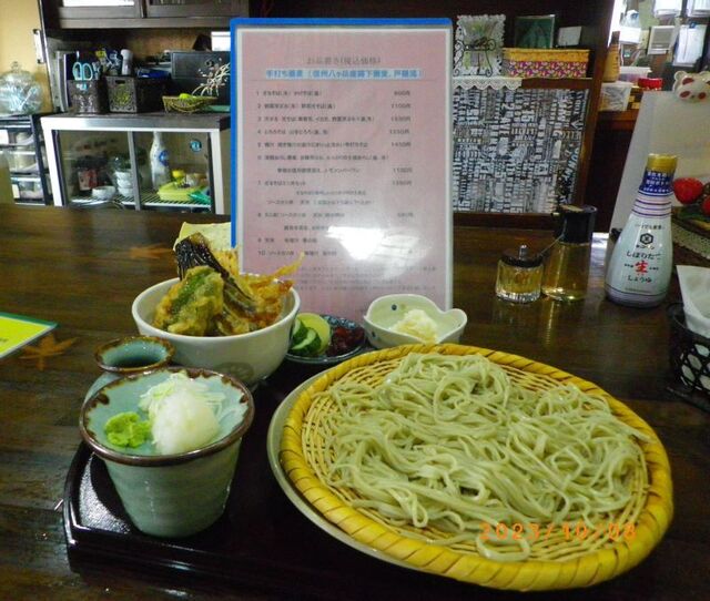 御代田町の伍賀、JAの野菜の集荷場の近くにある蕎麦屋へ行った。初めて入ったので勝手はわからずだが、一人で作っているから遅いよと申告してある。怒り出した人でもいるのだろうね。ざるにするか悩んだが、人気...