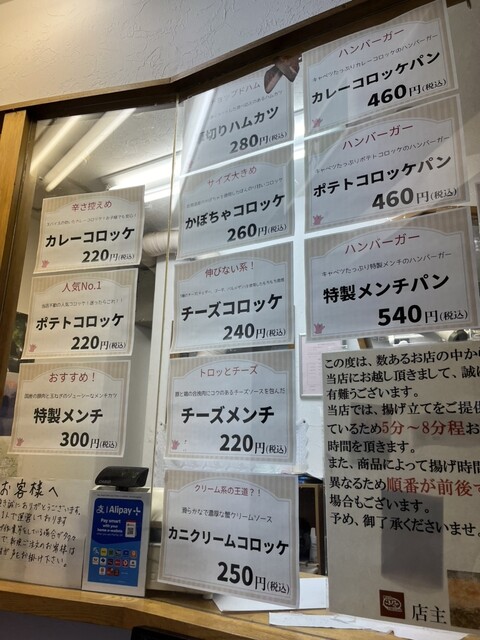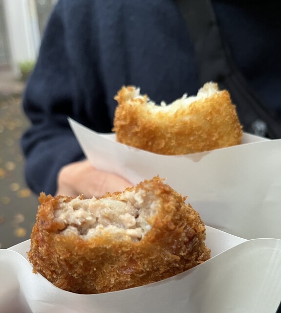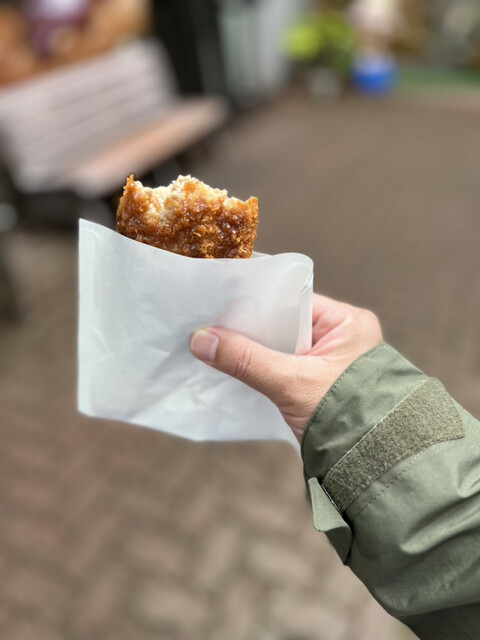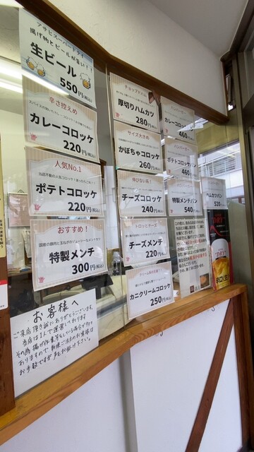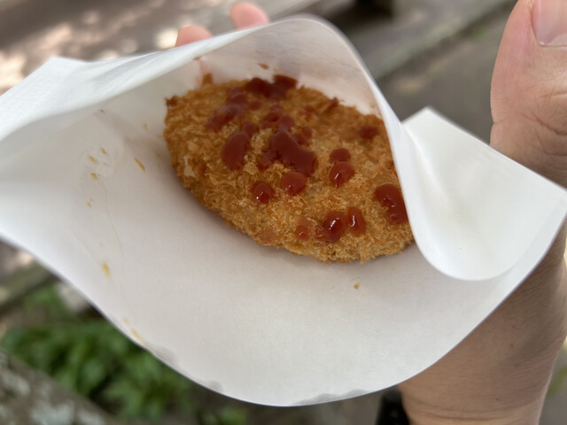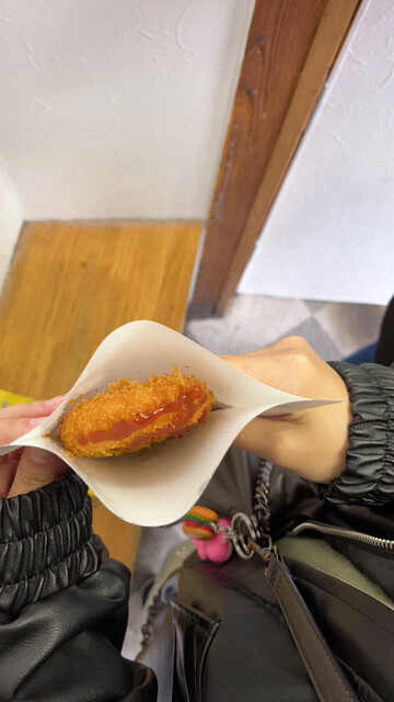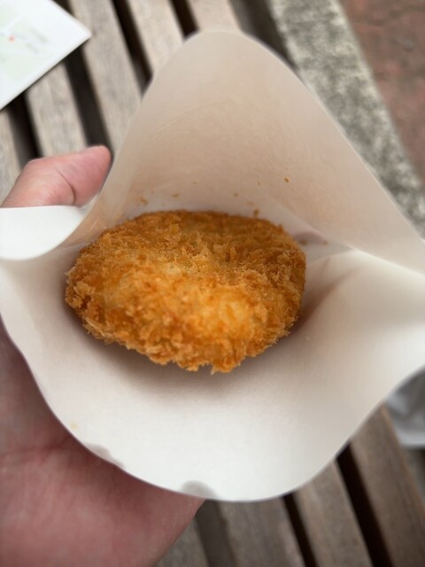 軽井沢旅行に行った際に立ち寄りました。軽井沢銀座から少し脇道に入ったところにお店がありました。色々な種類のコロッケがありました。シンプルなコロッケをいただきました。注文してから揚げてもらえるので、揚げ...