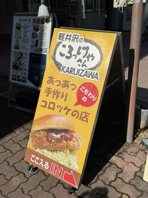 軽井沢銀座を歩いていると不意にコロッケの看板が見えて気になります。