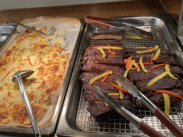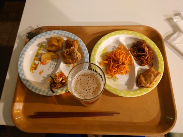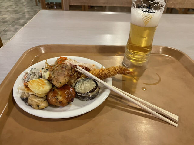 2日間滑って疲労困憊の中、ビアガーデンに有りがちな定番メニューとアルコール飲み放題で旅を締めくくります。