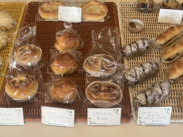 午後にはほとんど売り切れて種類少ないのが普通ですが、この時期はたくさん焼いてくれてました^ ^ 嬉しい〜 杏やら葡萄やらクルミやら、やたら木ノ実達の詰まったやつ(失礼名前が、、)とか買えた!シナモンロ...