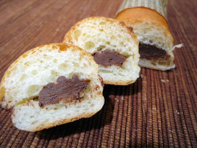 英字新聞でちょっぴりオメカシした細身のパンは、手軽にパクつけるスナックのよう♪サンドされたチョコレート入りバタークリームがおいしいです。