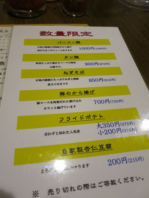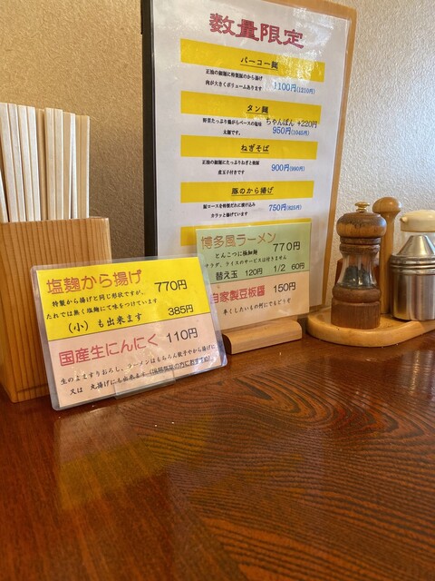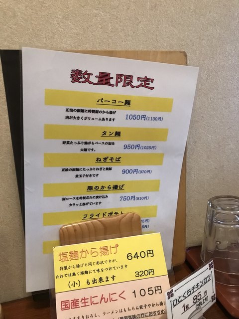 タンメンをオーダー。テーブルに烏龍茶が置いてあって薄めて飲む。しばらくしてサービスだとのことで生野菜ミニサラダが提供。パスタとかなら良くあるがラーメン屋さんでは初めてか。あまりサラダ好きでない私は無しで100円安い方が良い(笑)。