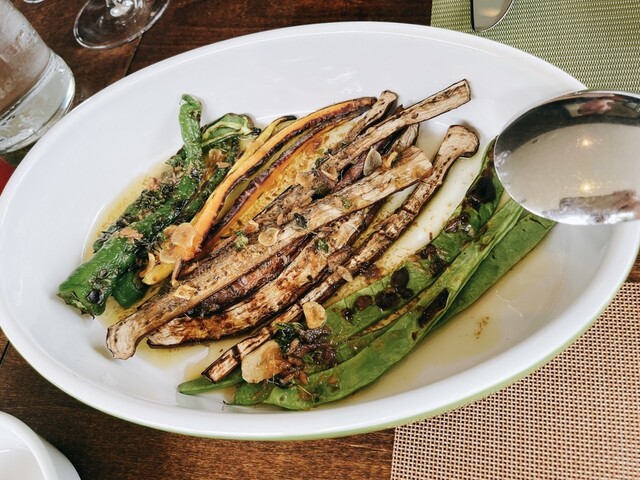 ○軽井沢野菜の炭火焼き。