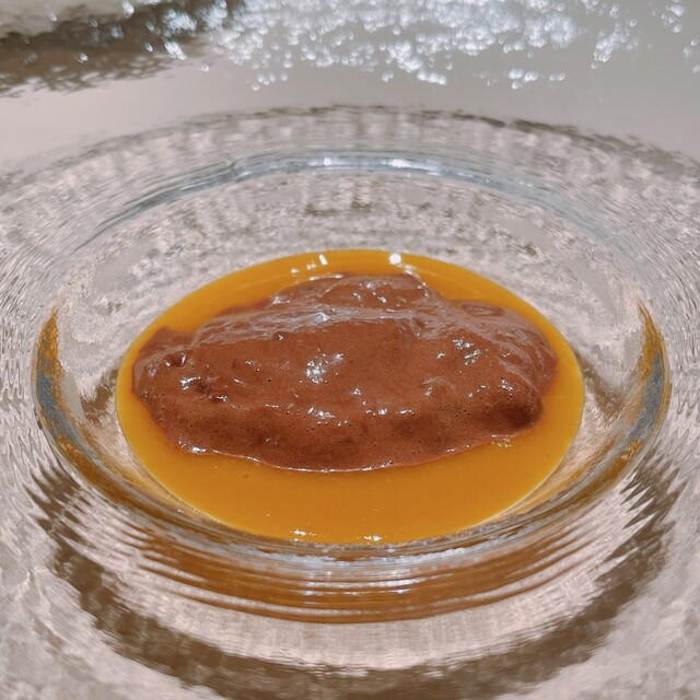 ホロホロ鳥の卵黄のソースをかけて。