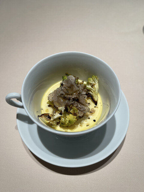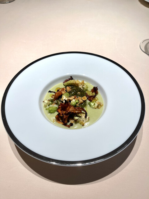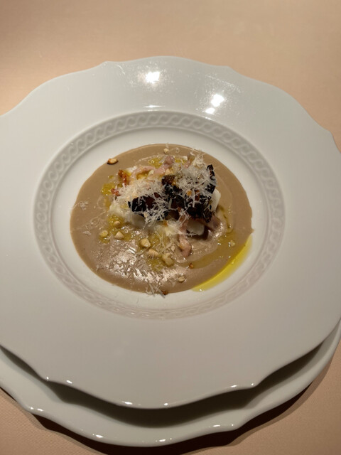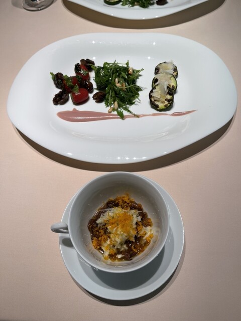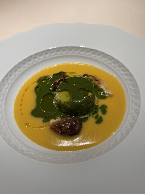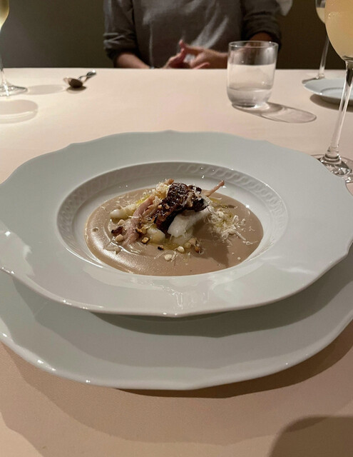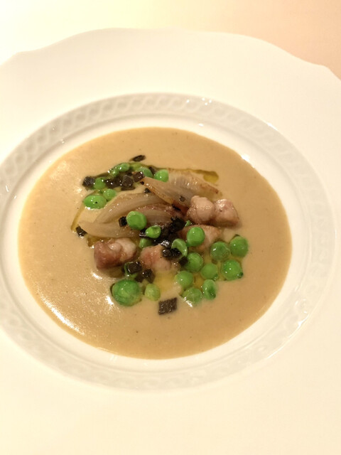 野菜のスープ、マスカルポーネ、ハト