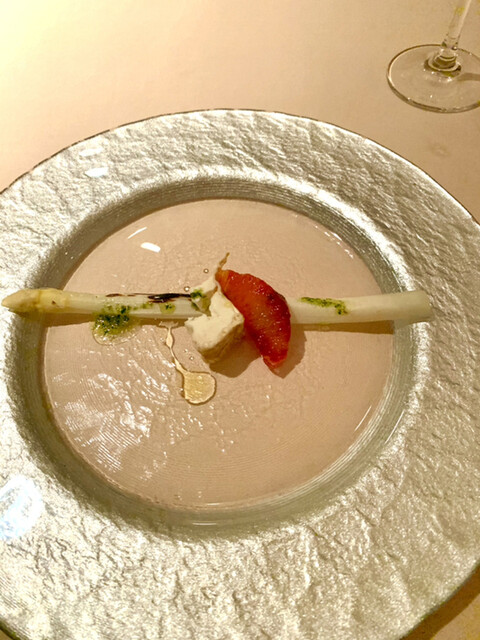 白アスパラガス、パルメザン、アカエイ、ジェローネ
