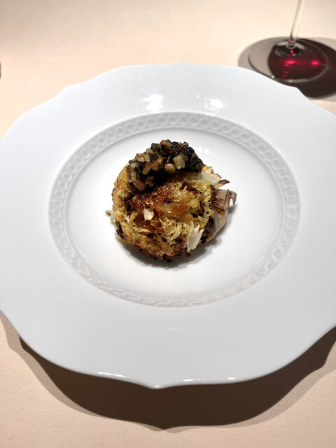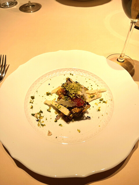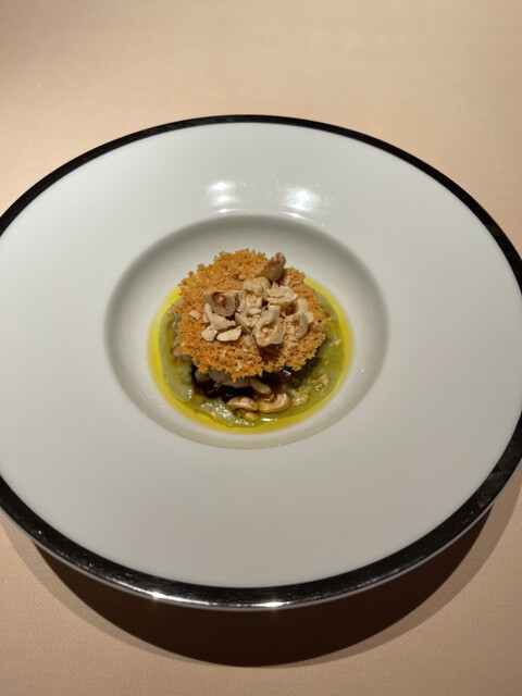 ヤギのチーズ、根セロリ、エスカルゴ、ピスタチオ