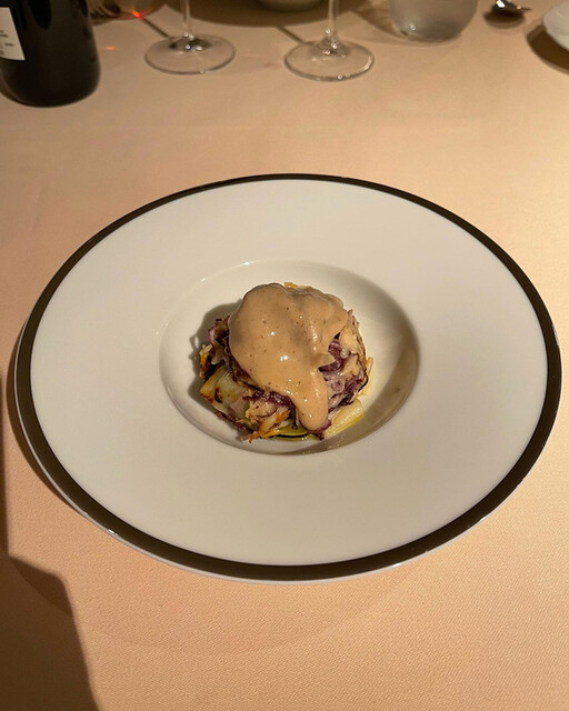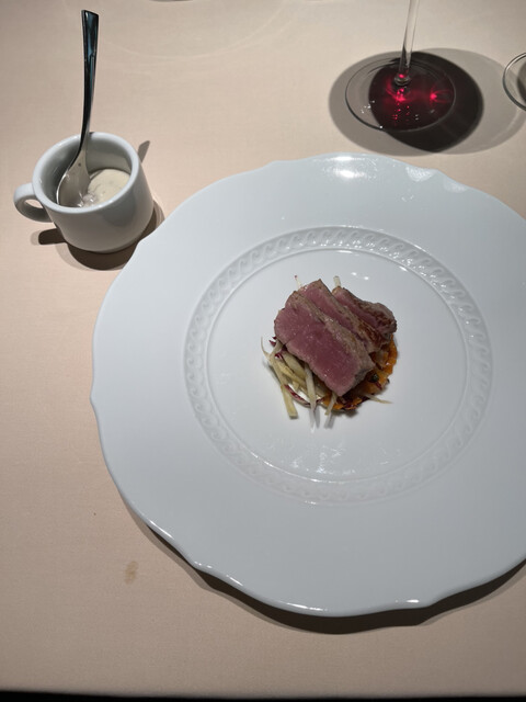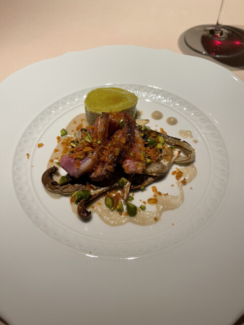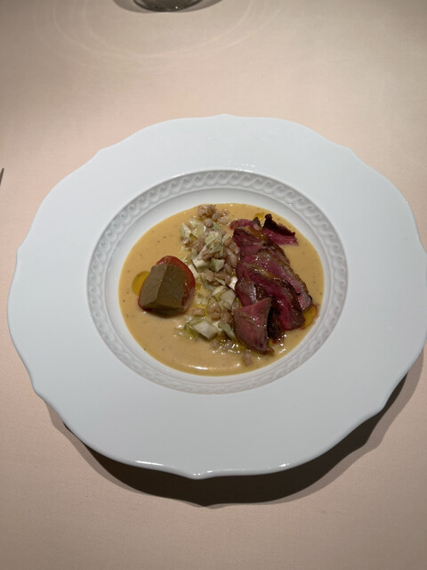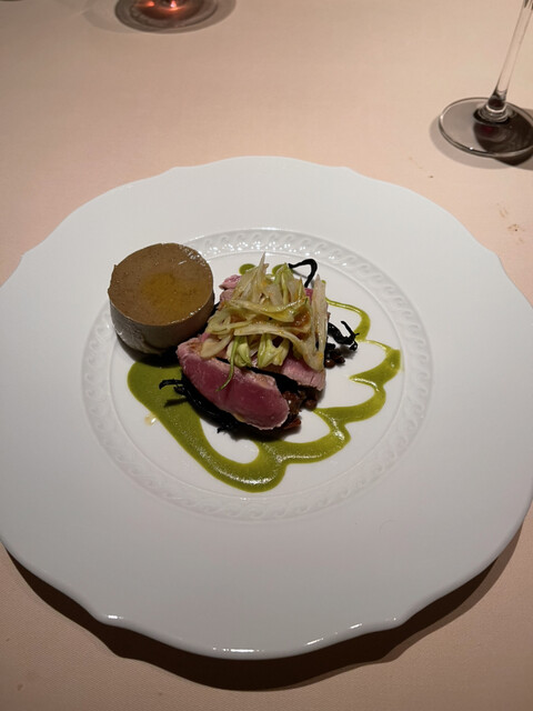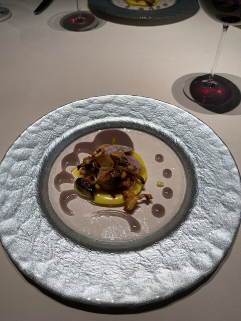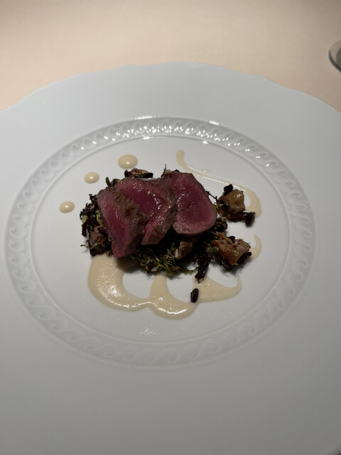 蝦夷鹿のフィレ黒米、鴨のフォアグラ