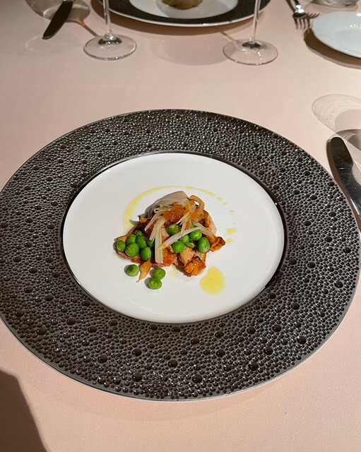 鴨の胸ジロール、グリンピース、鴨フォアグラ、