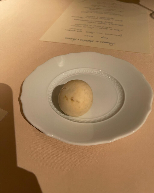 血のみ子羊、ジェラーナ、菊芋の薄切り、ボッタルガ