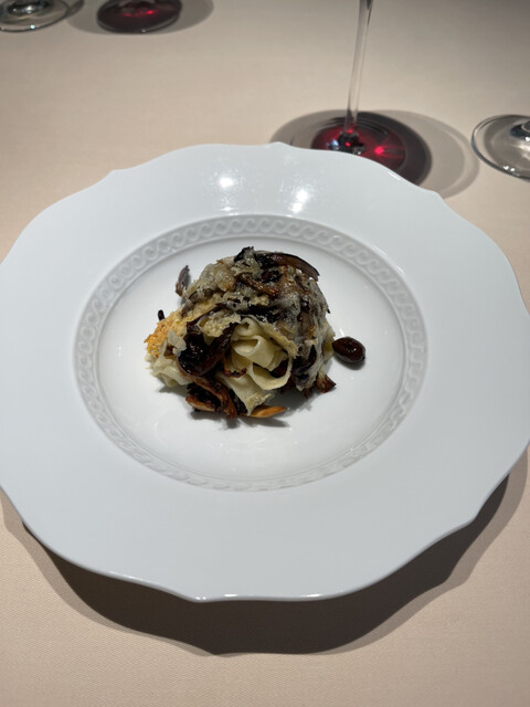タリアテッレ、ほろほろ鳥、エスカルゴ、野菜のジロール