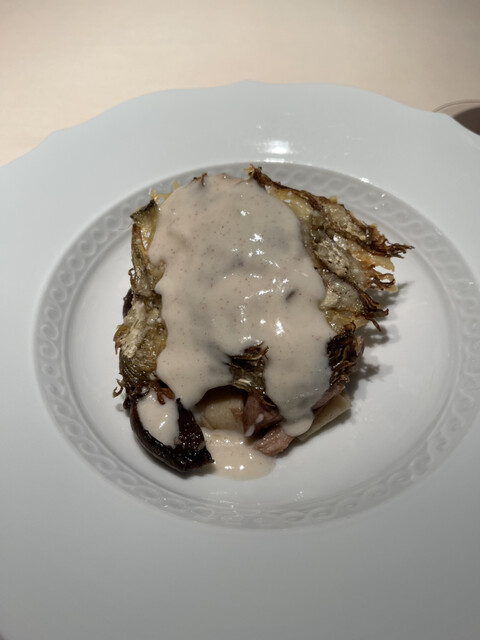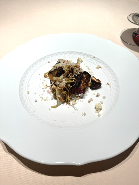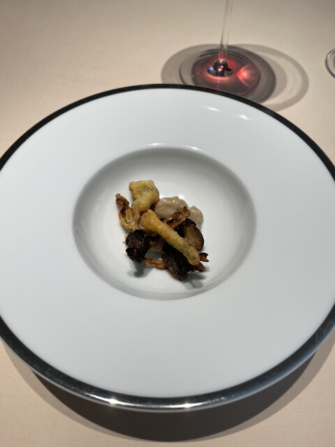 アーティチョーク、ヒラタケ、エシャロットのソース