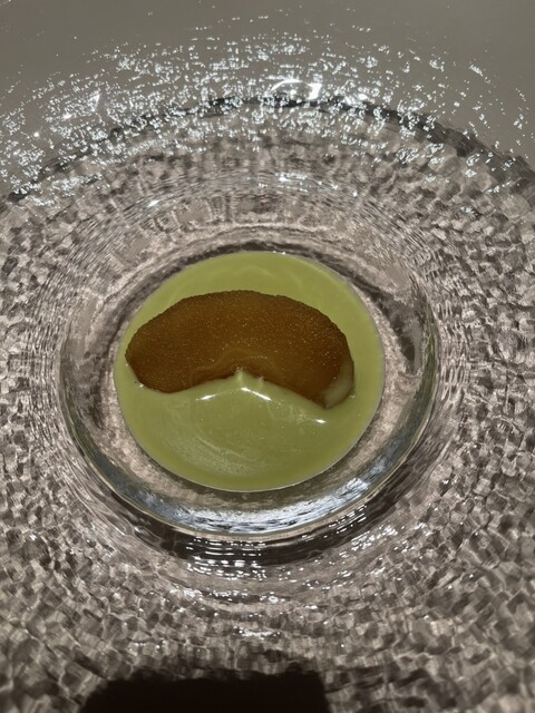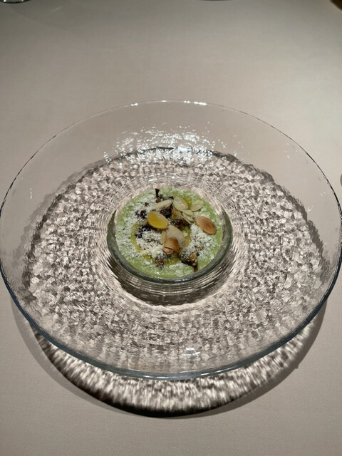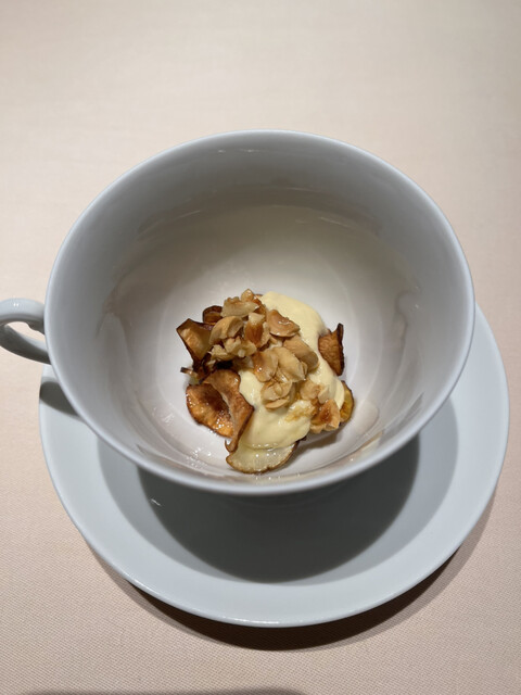 メロンのスープ山羊のチーズに洋梨入り
