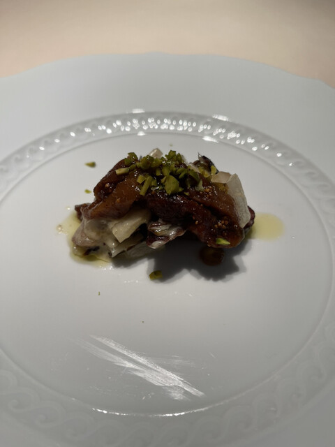 イベリコ豚頬肉、ドライイチジク、子牛の胸腺