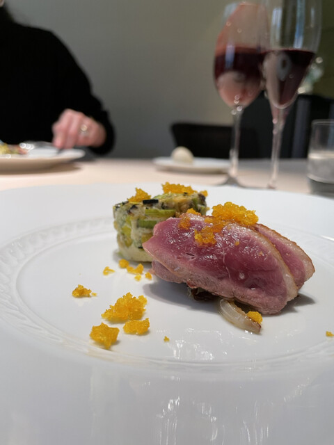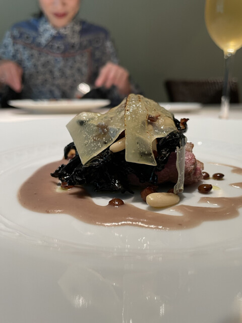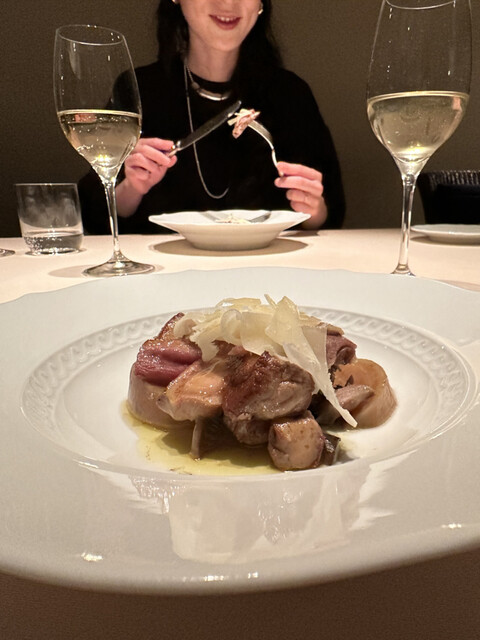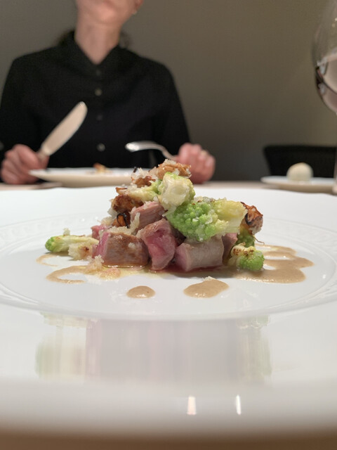 パスタのもっちり弾力ある食感を感じながらピュレの深みに、立ち上がるリキュールの甘い香り、山鳩の綺麗で力強い味わい、