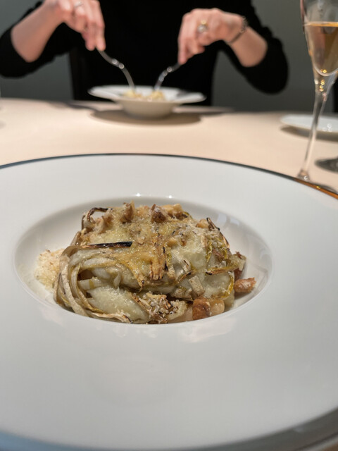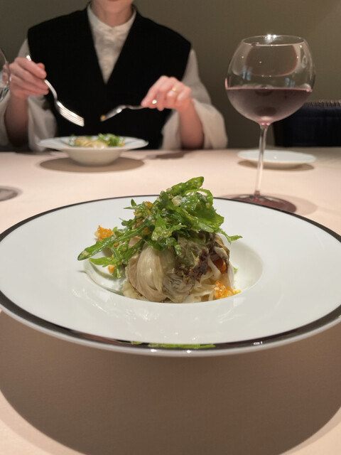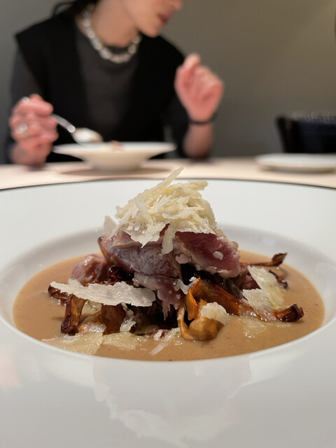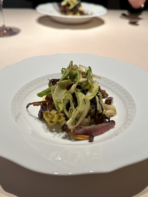 サマートリュフの優しく主張する香りか、スフォルマートの柔らかな口当たり、そして、アンチョビの深みを帯びた鳩の旨味がぎゅーーっと!
