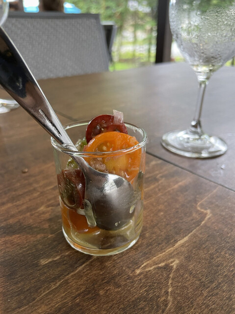トマトの清涼感と綺麗な酸味と、ハーブの青い香り、