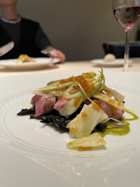 そして繊維感の心地よい人参とラディッキオは甘味と苦味を、肉と示し合わせたかのように違和感ないトーンで醸す。
