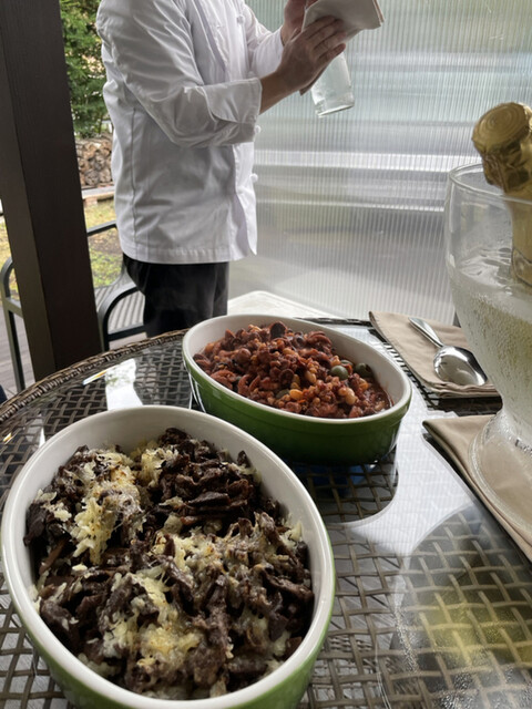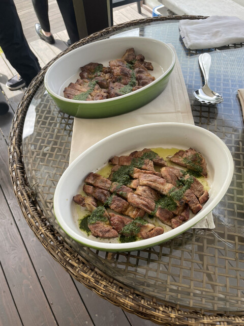 塩揉みしてシェリー酒につけてオーブンで煮込んで、ミントとローズマリーでマリネ。