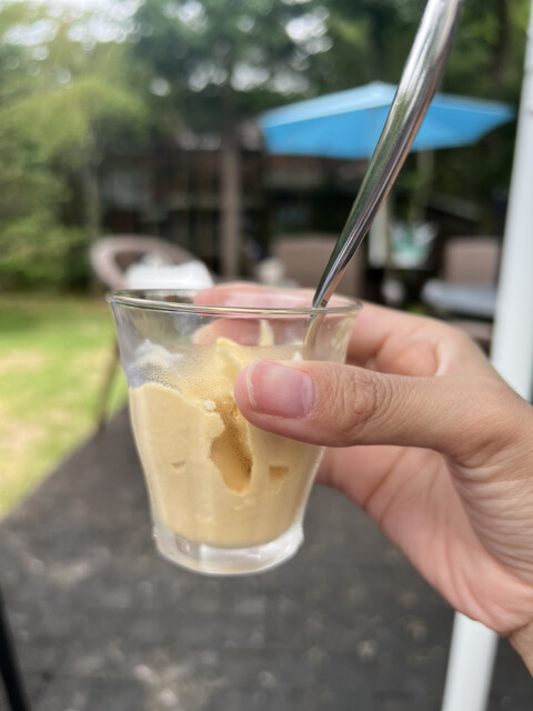 北海道の子羊が美味しかった。バジルのソースとの相性も抜群。外の美味しい空気と頂く料理は一段とまた