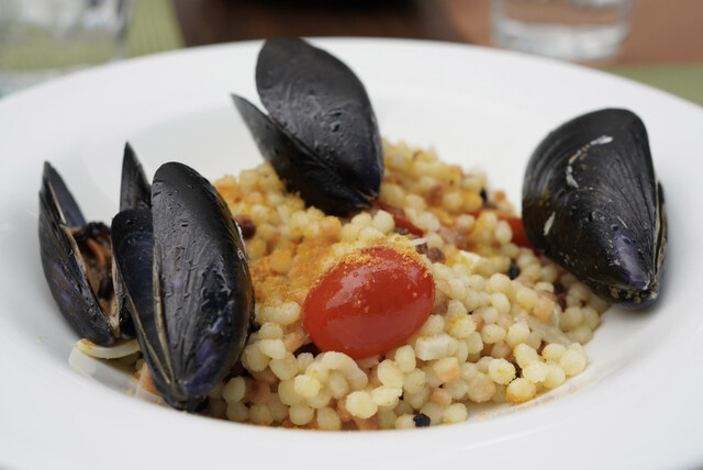 オレキエッテ フランス産エスカルゴ オリーブ、シチリア産ブロッコリー、ロマネスコ、炙ったエメンタールチーズ、ラルドのソース