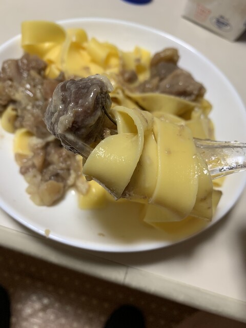 猪のほほ肉と栗のストゥファート ラム酒風味ローズマリーとグラナパダーノチーズ(パッパルデッレ)を買いました。
