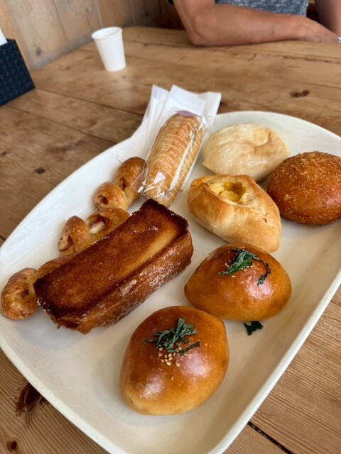 軽井沢での朝食のお気に入り、こちらのお店の美味しいパンをテイクアウトしました。夕方にお邪魔したので、パンの種類は限定的でしたが、相変わらずの混みでイートインスペースは満席でした。