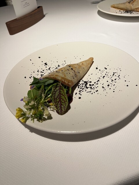 野菜のブーケに見立てた一品は、クレープに色とりどりの野菜や花が詰められており、季節の訪れを感じさせてくれるものでした。
