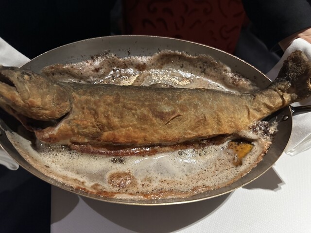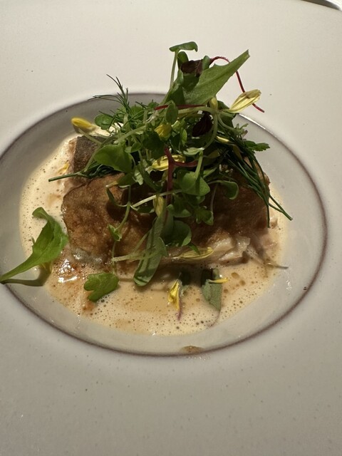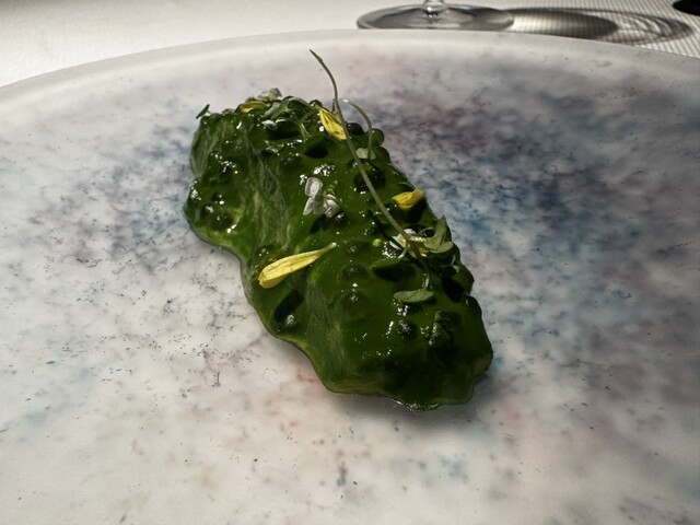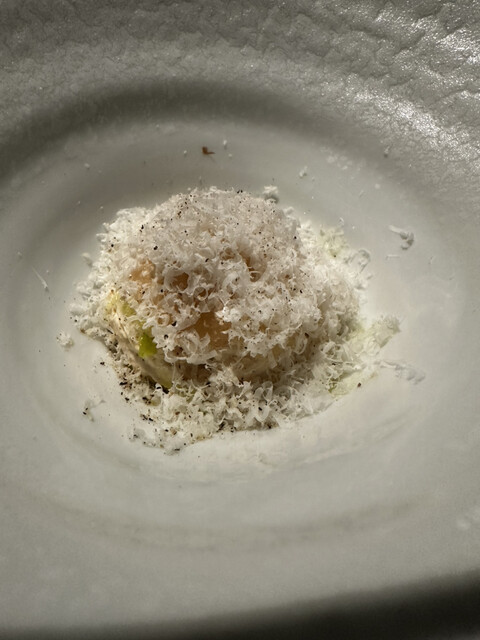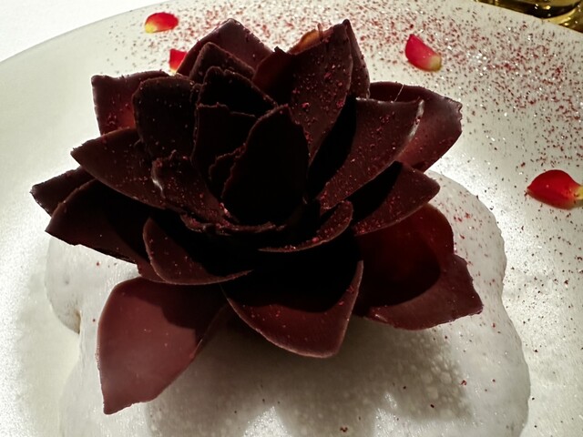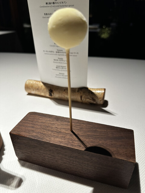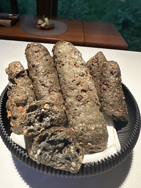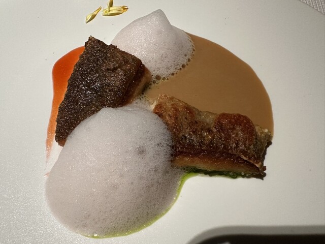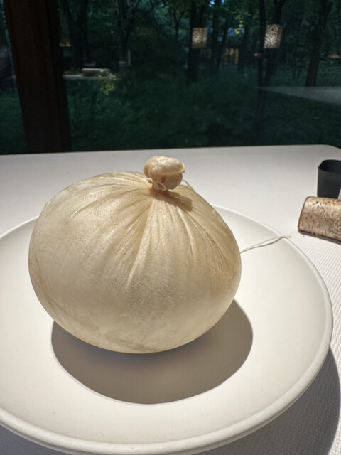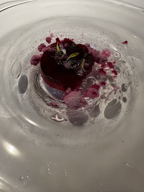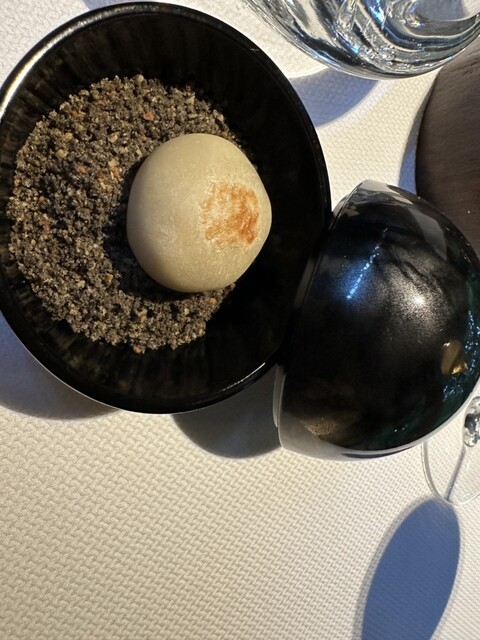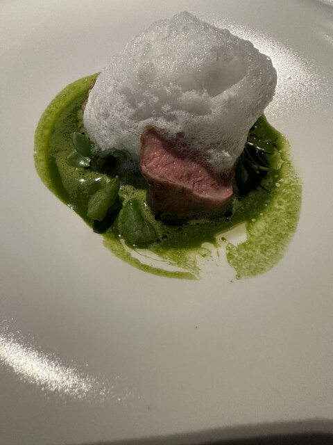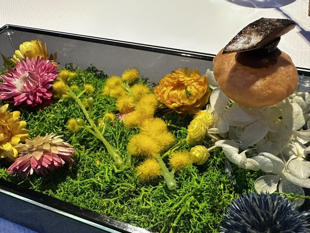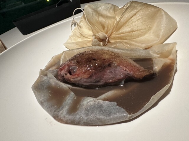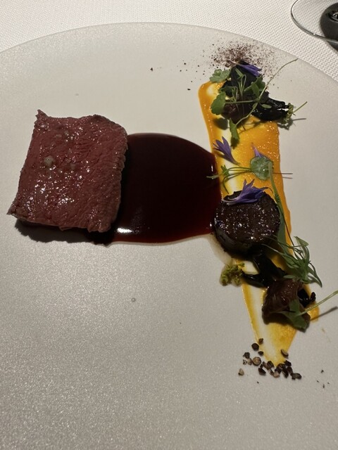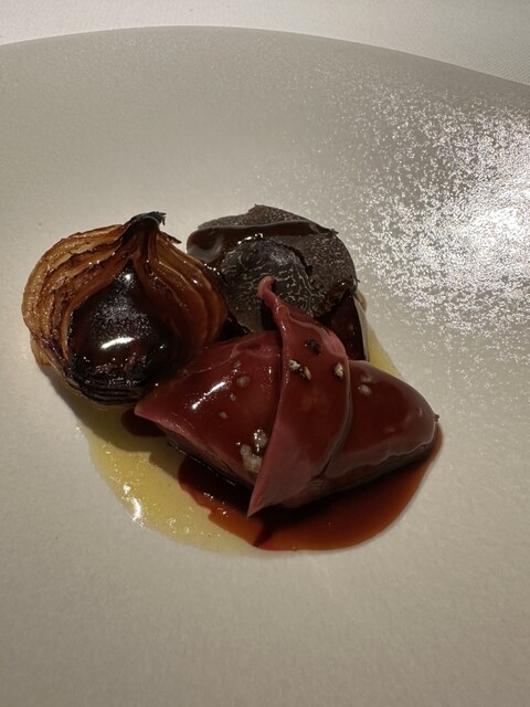 今ではやっているお店が少ない調理法のお料理もあり、5番目の風船状の豚の膀胱の中に鳩肉を入れてお湯で火を通し、フォアグラ、トリュフ、玉ねぎと共に頂くお料理がお肉がしっとりしてて美味しかったです。